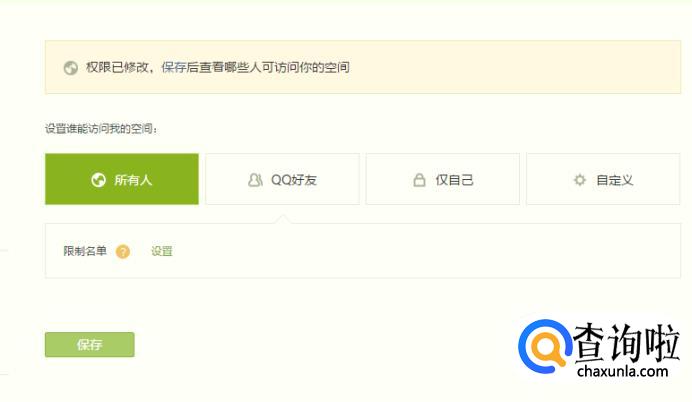 然后将设置谁能访问我的空间设置成所有人。