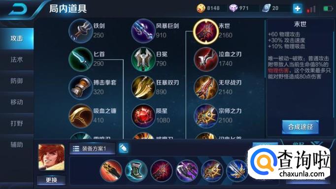 接下来把中级打野刀升级为高级打野刀,增加攻速,然后依次出黑切,宗师之力,破军,这个出装方案可以咋一看觉得没有什么伤害,但是在战斗中实测的时候可以看到这个出装伤害是非常高的,不论是打脆皮还是战士的效果都很好。