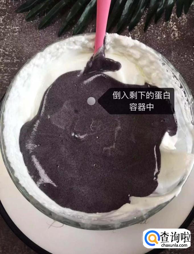 然后将搅拌好的黑米湖倒进剩余的蛋白容器中,如下图所示。