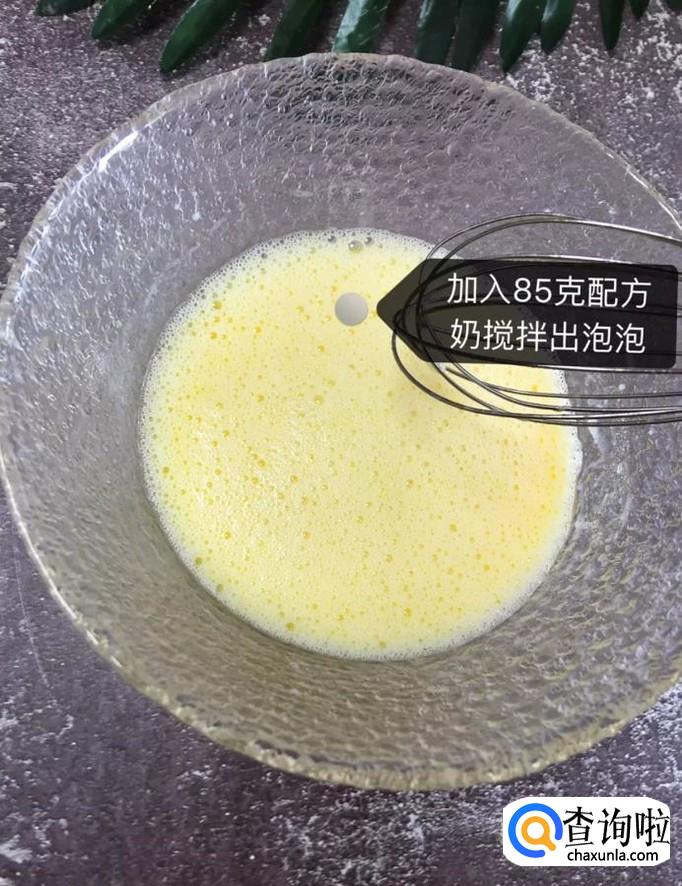 然后加入85克的奶粉,搅拌出泡泡,如下图所示。