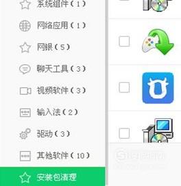 在卸载界面的左边菜单列表里找到“安装包清理”
