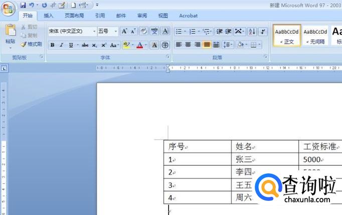 首先,打开一个空白的Word文档,输入一个表格做演示用。