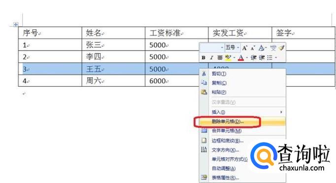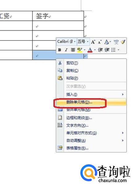 Word2010中的表格怎样删除单元格