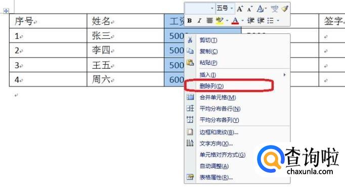 同理,需要删除整列的话,也是用鼠标先选中列,点击右键,然后选择“删除列”即可。