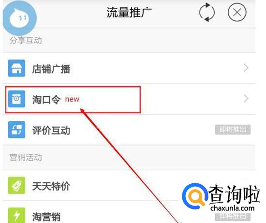 进入“淘口令”界面,选择最下方“新建”按钮,因为你是第一次使用,不会出现其它内容。