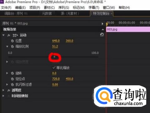 点击“运动”前面的小三角,再点击缩放比例前面的小三角。