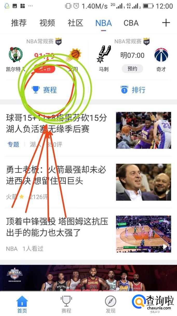 点击如下圆圈的“赛程”,还可以看到赛事回放和赛事预告哦