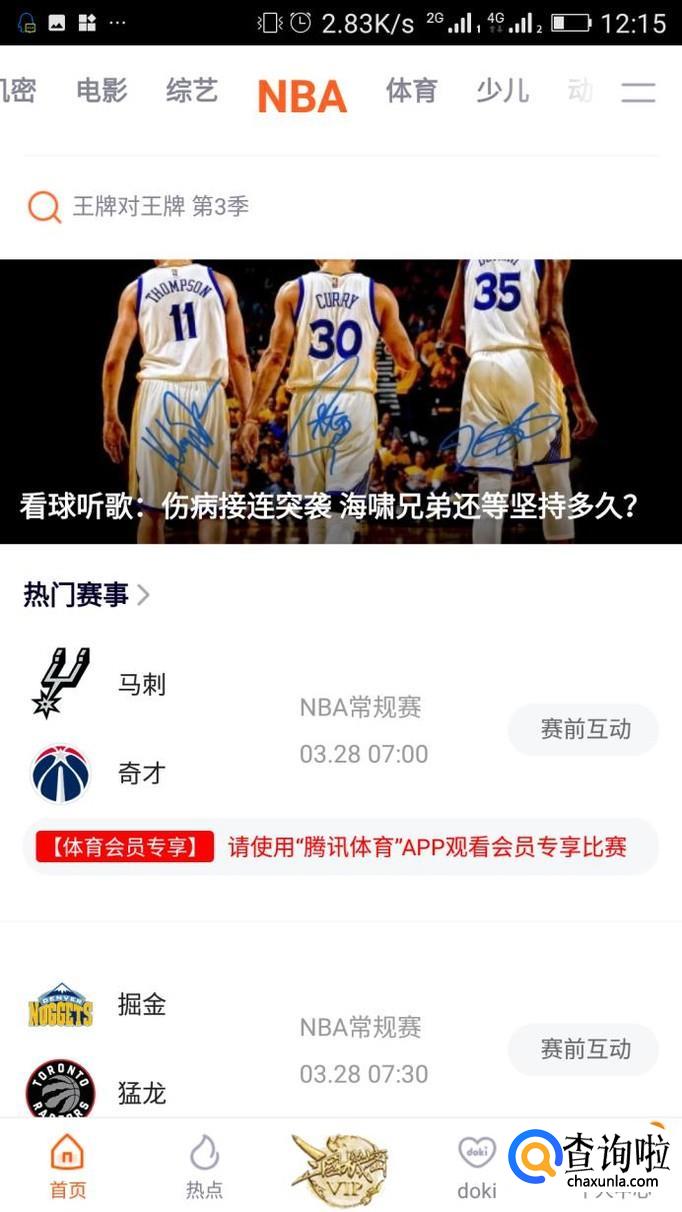 点击弹出页面的“NBA”专区,就可以观看NBA正在直播的各项赛事了哦