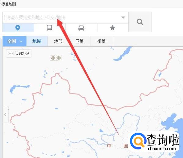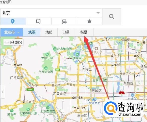 进入之后,在图示位置输入想要看街景的地方,点击“搜索”按键,如图所示。
