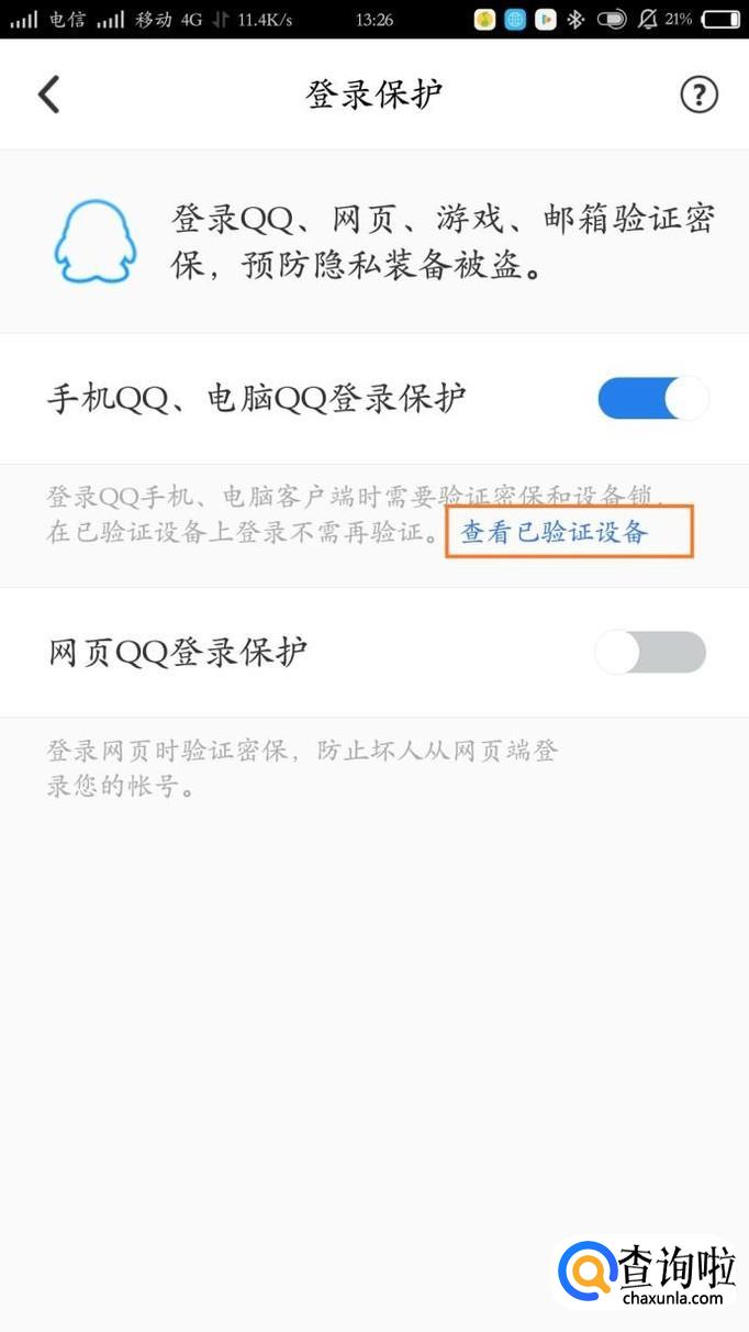 点击蓝色的小字"查看已验证设备",就可以看到曾经登陆过该QQ号的设备,清除记录这些设备记录就不能再次登陆了。