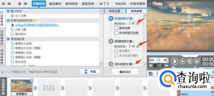 分别在“出现时的字幕”、“停留时的字幕”和“消失时的字幕”下的“持续时长”框框内输入持续时间