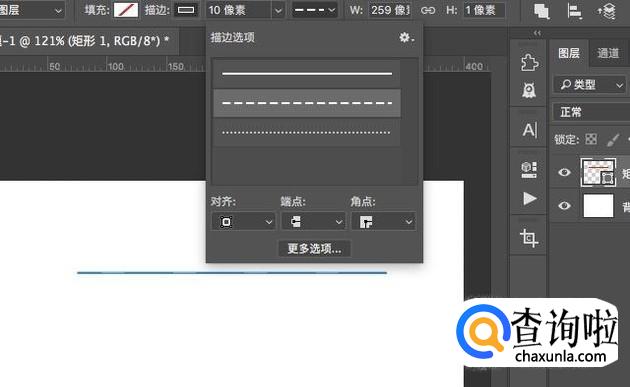 选择矩形工具之后,在画布上绘制一个高度为1px的矩形。