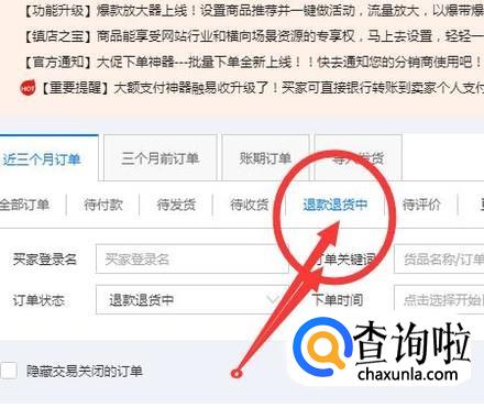 登录自己的淘宝账号,打开退款退货栏目,找到需要拒绝退款的客户;