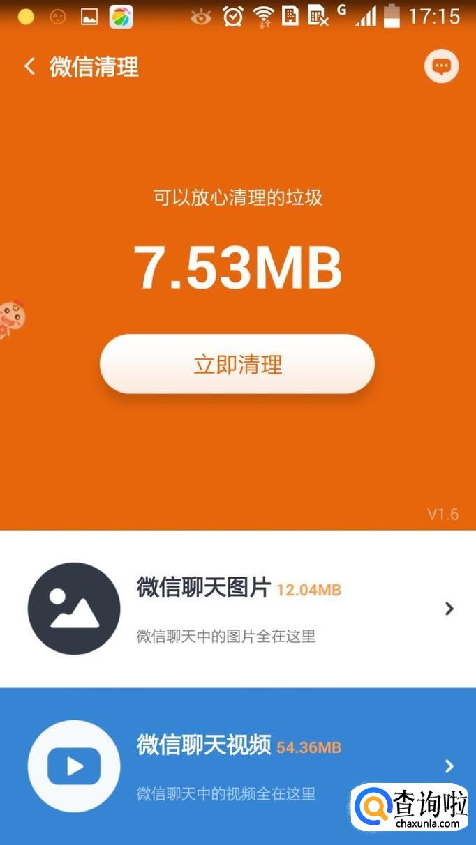 在第二步的功能界面点“微信清理”,就会开始清理微信垃圾。