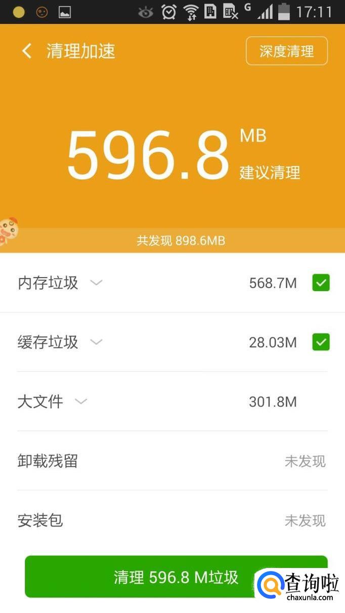 经过以上清理,大部分垃圾都会被清除,手机内存变大,运行也比以前流畅了。