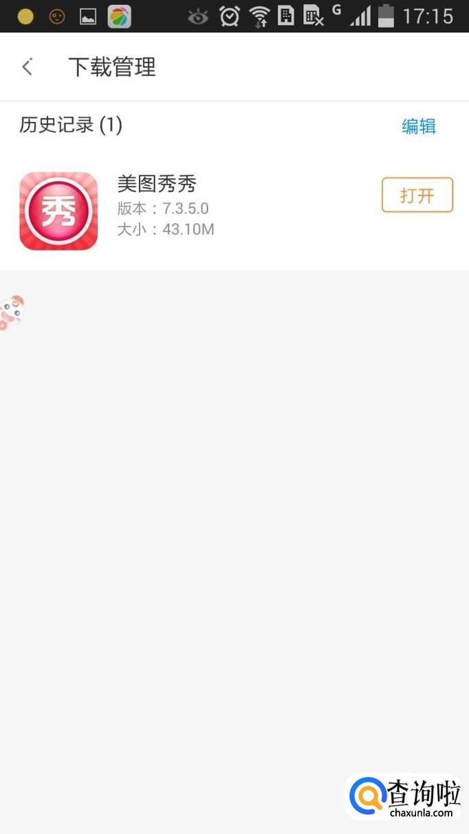 再回到第二步的功能界面,选“下载管理”,如果要清除显示的内容就在“历史纪录”下点“编辑”,软件旁边会出现一个圆圈,把它勾选,再点“删除选中”,就把软件安装包删除了。