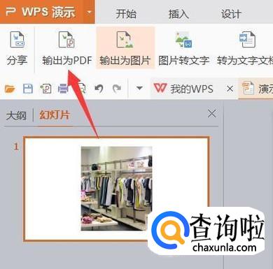 除了用Word我们也可以用PPT进行图片格式的转换,我们首先打开一个PPT,同样的插入图片,在左上角的wps演示中找见输出为PDF,开始转换即可,如下图所示: