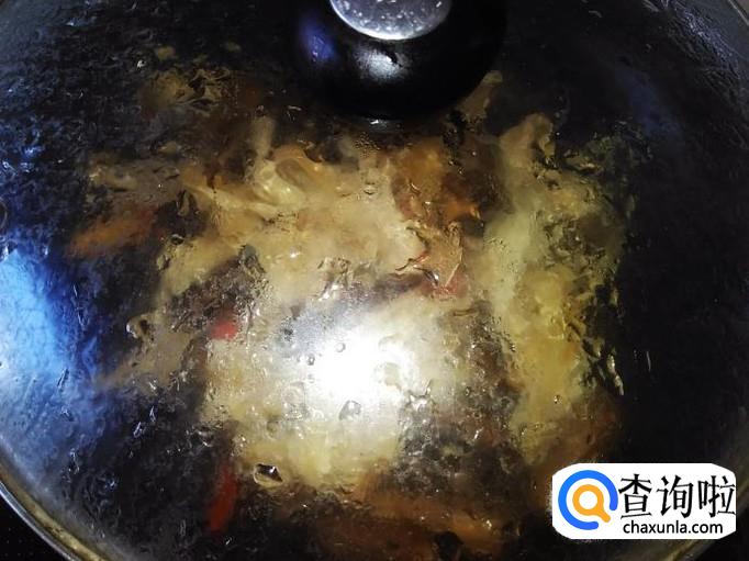 打开盖子下几粒味精翻炒一下,熄火。非常美味的腐竹炒黄鳝就做好了。