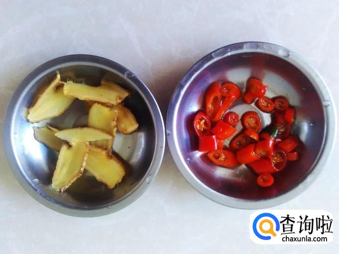 首先把黄鳝内脏清理干净,姜片、小米辣准备好。