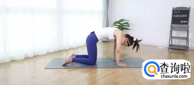 跪在地上,两膝打开与臀部同一宽度,双手手掌按在地上。