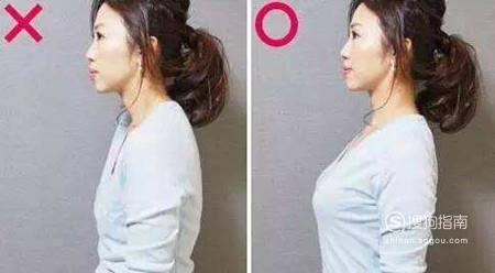 首先站着或坐着,直立上半身,两眼平视前方并保持不动,收紧下巴,并用手指把下巴朝后推。保持10秒,慢慢返回起始位置。每天3组,每组重复10次。
