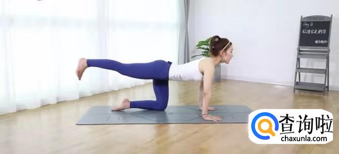 呼气,抬腿,胸腔头部离地,延长脊柱,保持5个呼吸。