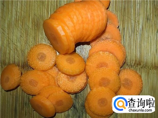 红萝卜削皮,清洗干净,切成薄薄的萝卜圈。