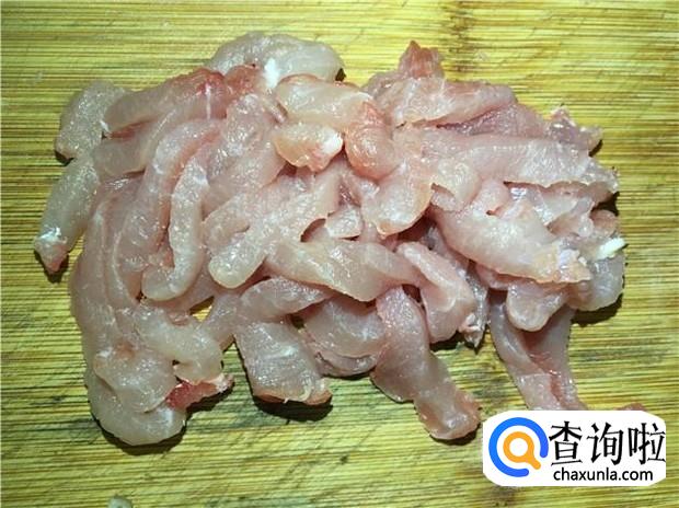 瘦肉清洗干净,切成一条条的肉丝状,加入少许酱油、蚝油和生粉,腌制一会。