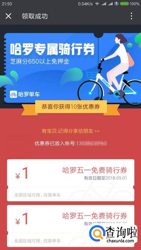 优惠券可降低产品的价格,是一种常见的消费者营业推广工具。哈罗单车会不定期发放一些免费骑行的优惠券,可利用优惠券免费骑行,抓住机会哟。
