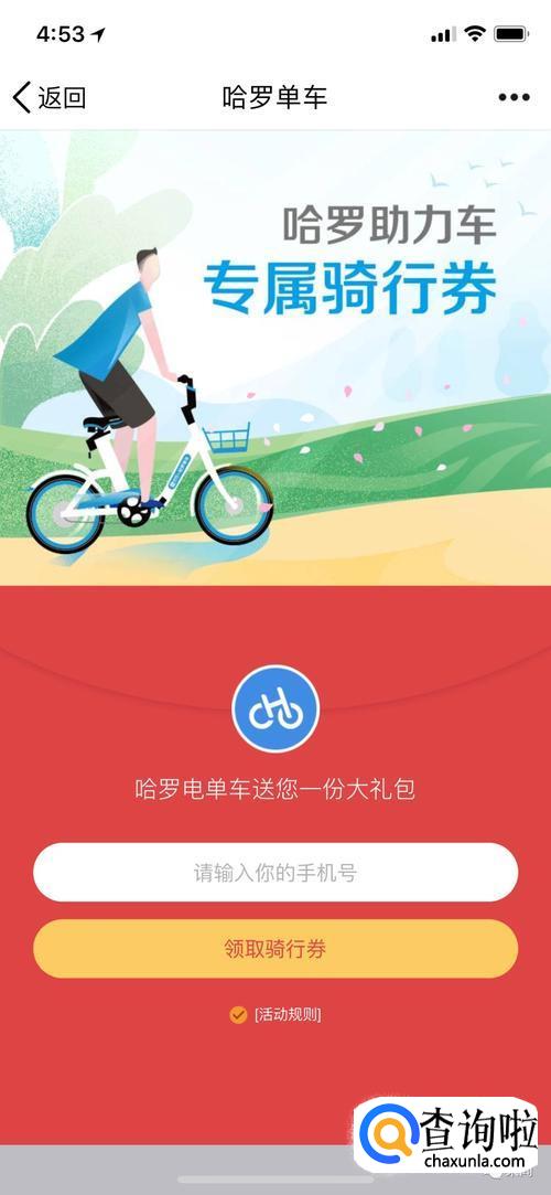 助力车大家都知道,哈罗单车最近又推出了助力车卡劵,进入哈罗单车活动界面,就可以看到免费领取助力车卡券活动,点击免费领取,就可以即刻畅骑!