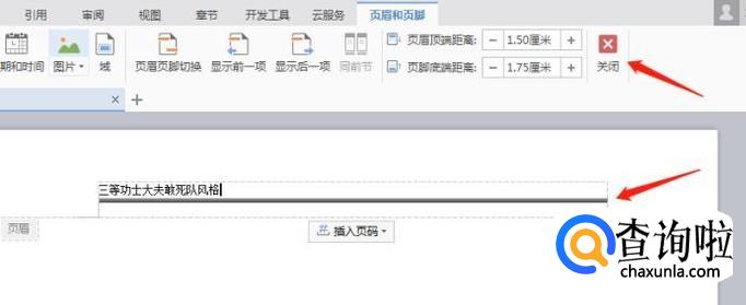 然后我们在插入栏目内找到“页眉页脚”的按钮,点击进入编辑状态。