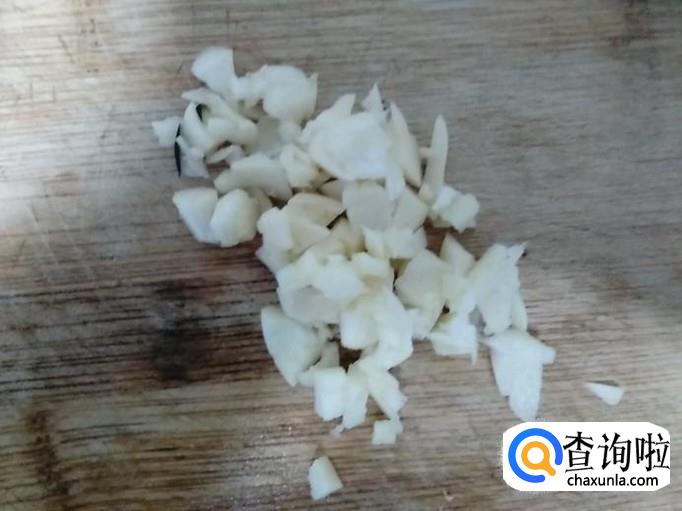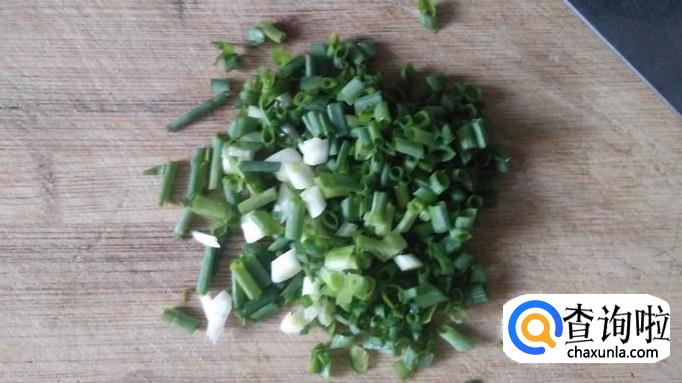 首先切好小葱,蒜末放置一边备用,切得碎一点。