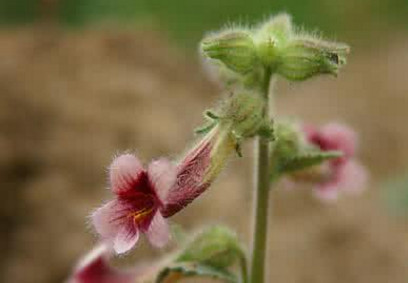 野生地花是紫红色或者黄色,形状像唇形芝麻花,根黄色,叶子上有毛,有苦味,吃了会导致吐泻,头晕昏迷。