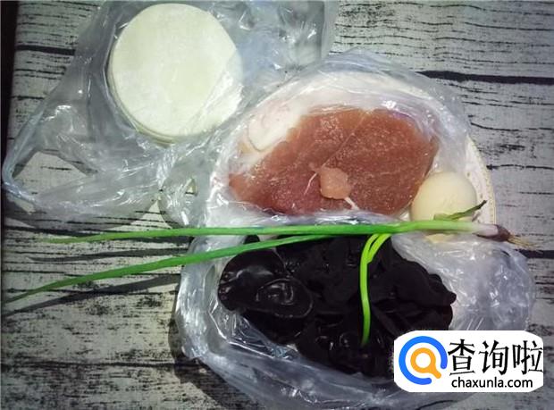 准备好所有原材料:半肥瘦一斤、木耳适量、香葱一根、饺子皮30张左右、鸡蛋一颗。木耳最好选择小木耳,小木耳香很多。