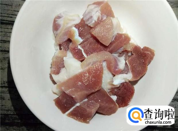 半肥瘦清洗干净,先切成小块,然后再用搅拌机搅碎。