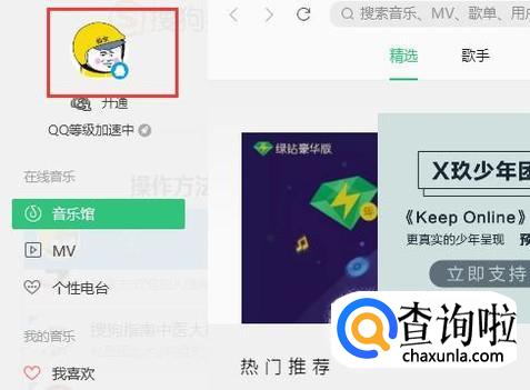 首先打开qq音乐,然后登陆上亲亲qq账号,点击自己的账号头像。