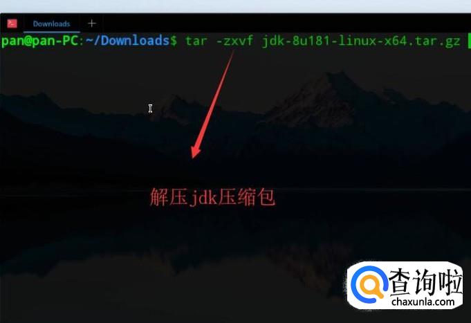 然后运用tar命令将jdk压缩包进行解压,如下图所示,注意tar命令后面的参数不要遗漏