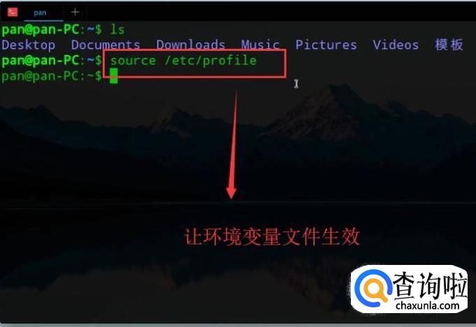 接下来通过source命令让修改后的环境变量文件生效,如下图所示