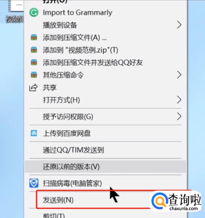 选中需要复制到u盘的视频,点击右键,选择发送到。