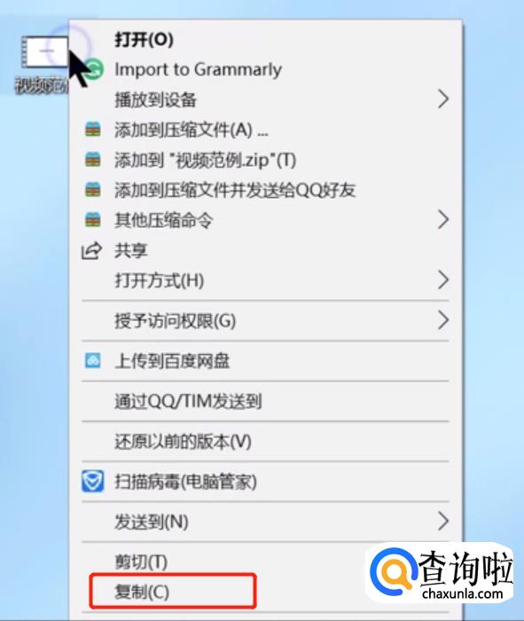 或者点击视频,单击右键,在弹出的对话框里面选择复制。