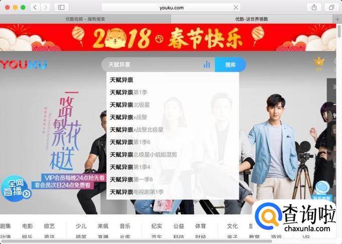 进入视频官网之后,在搜索框中输入“天赋异禀”搜索。