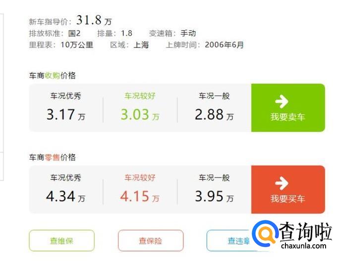 进入之后,即可看到二手车估价计算器对汽车做出的评估,如图所示。