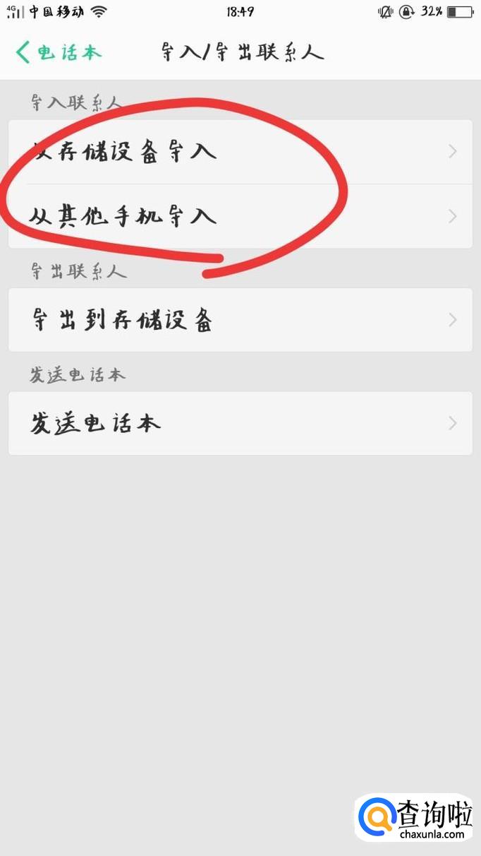 点击选择想要从哪个路径中导入手机通讯录的联系人,如下图。