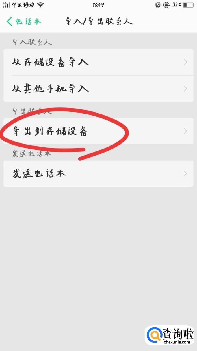 点击选择想要将手机通讯录的联系人导出的设备,如下图。