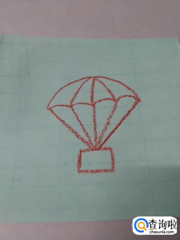 在伞绳下面,画一个长方形,表示吊着的物体,降落伞就画完了。