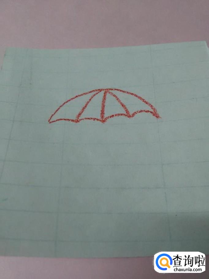从每条短弧线两端向下各画一条直线,表示伞绳。