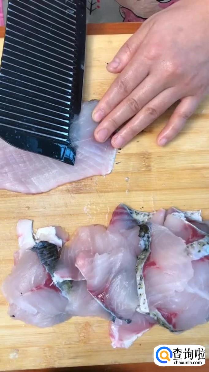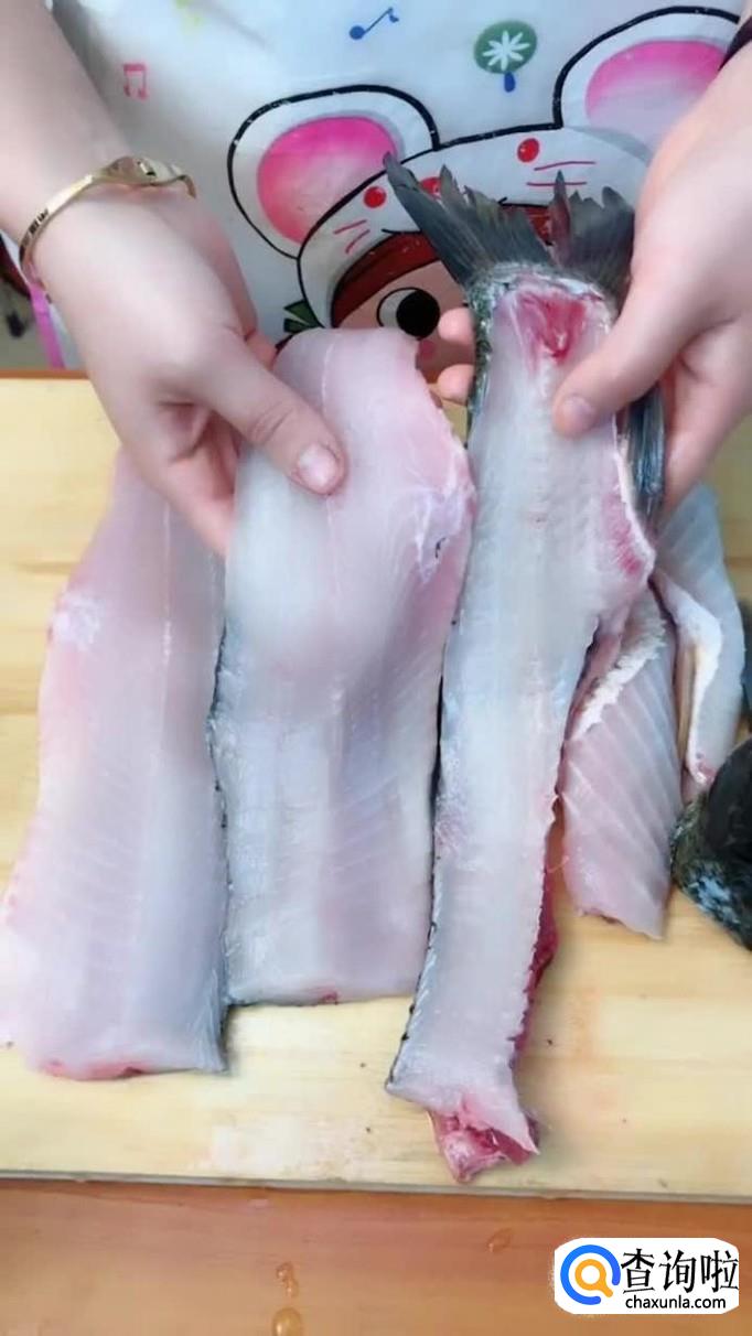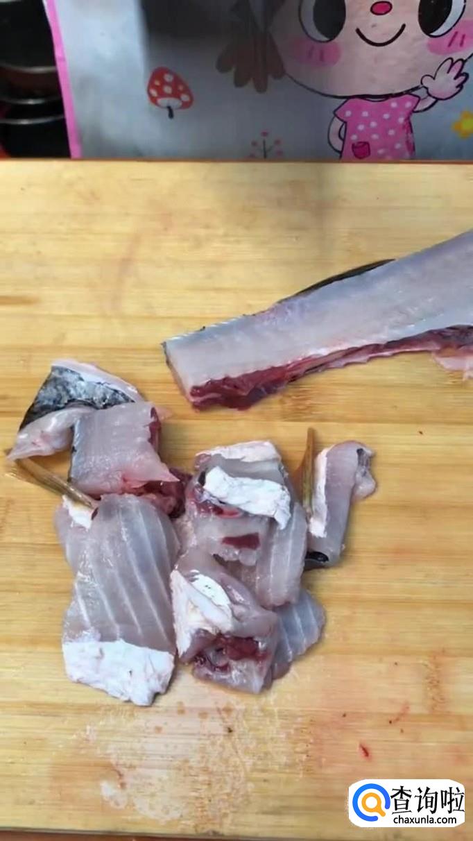 然后把鱼骨杜成小块,鱼肉分割出来,如下图所示。