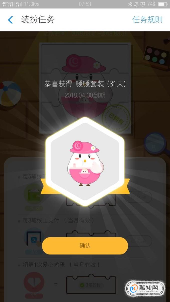碎片兑换完成之后,就会提示:恭喜获得XX套装,有限期是31天,然后我们点击确认。