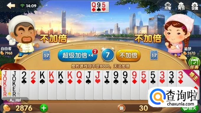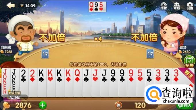 叫地主之后,会有一个是否加倍的环节;可以根据自己豆子的情况以及牌的好坏决定是否要加倍;加倍,顾名思义,就是胜利或者失败,欢乐豆的输赢会加倍;