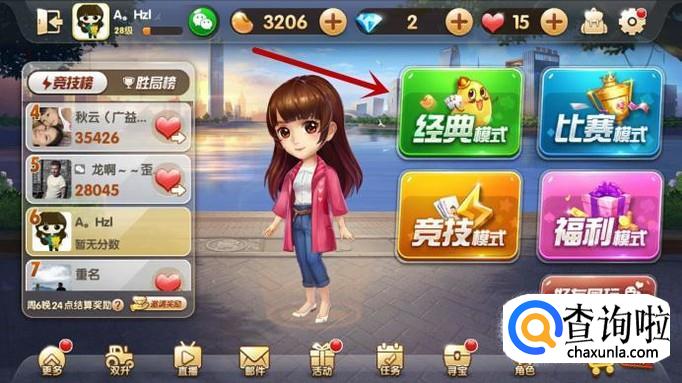 在界面的右方,有四种模式,分别是“经典模式”、“竞技模式”、“比赛模式”、“福利模式”;我们选择“经典模式”,点击;